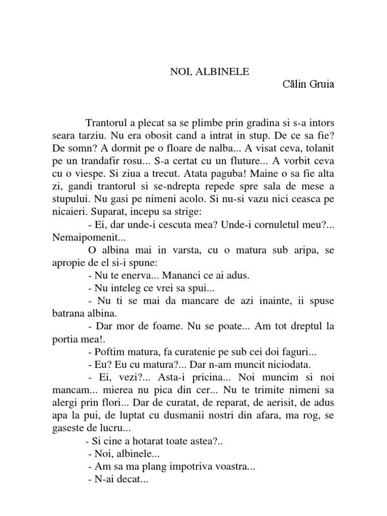 Noi Albinele După Călin Gruia Intrebari A Care Sunt Personajele Povestirii B Unde Se Plimbase Brainly Ro