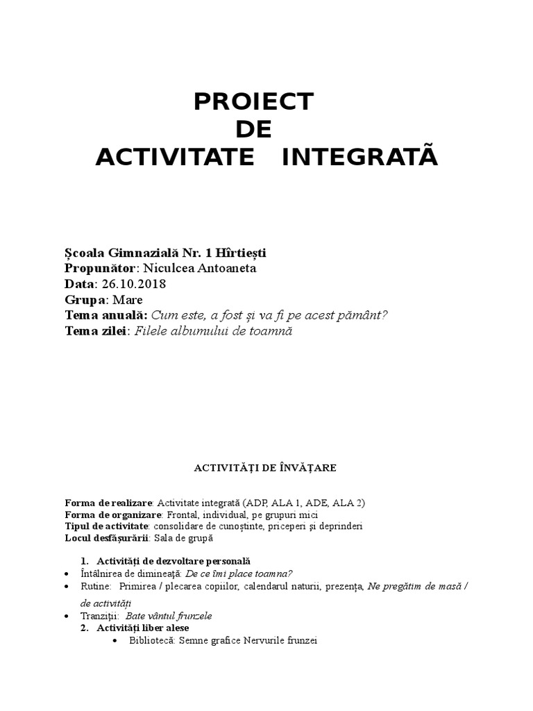 Doc Proiect De Activitate Integrat Madalina Marinescu Academia Edu