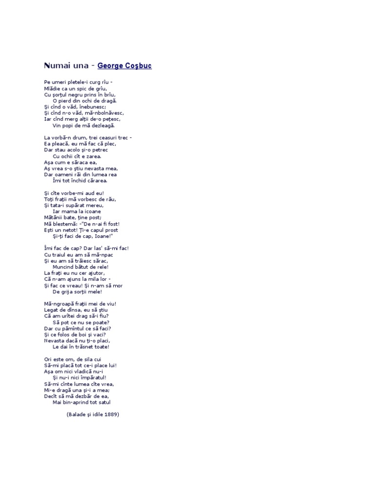 2figuri De Stil Din Poezia Numai Una De George Cosbuc Brainly Ro