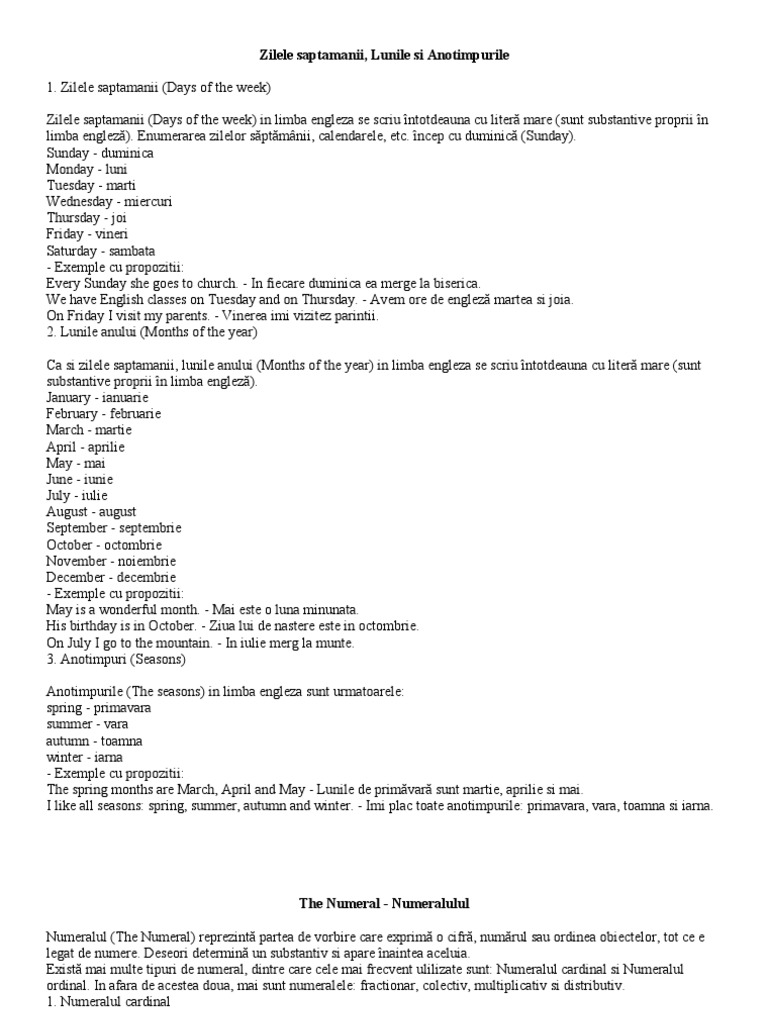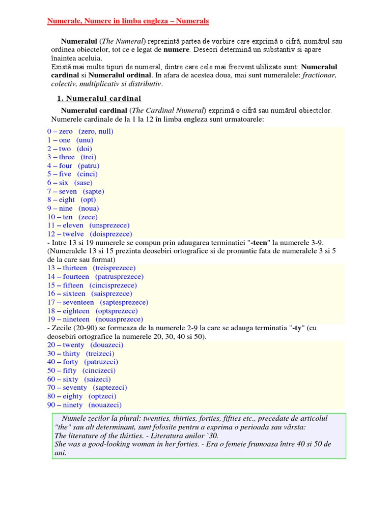 Numerale Cardinale Limba Engleză Docx
