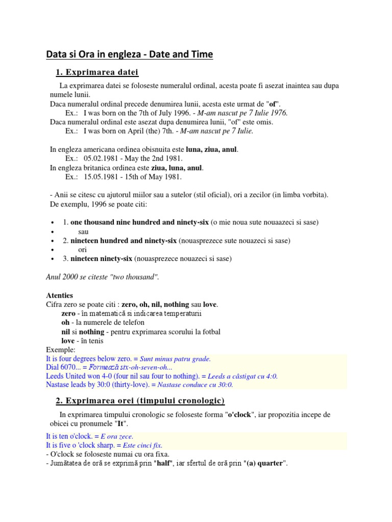 Data Si Ora In Engleza