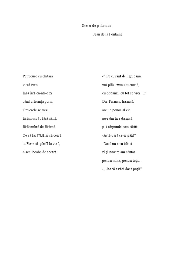 0 Greierele Si Furnica Jean De La Fontaine