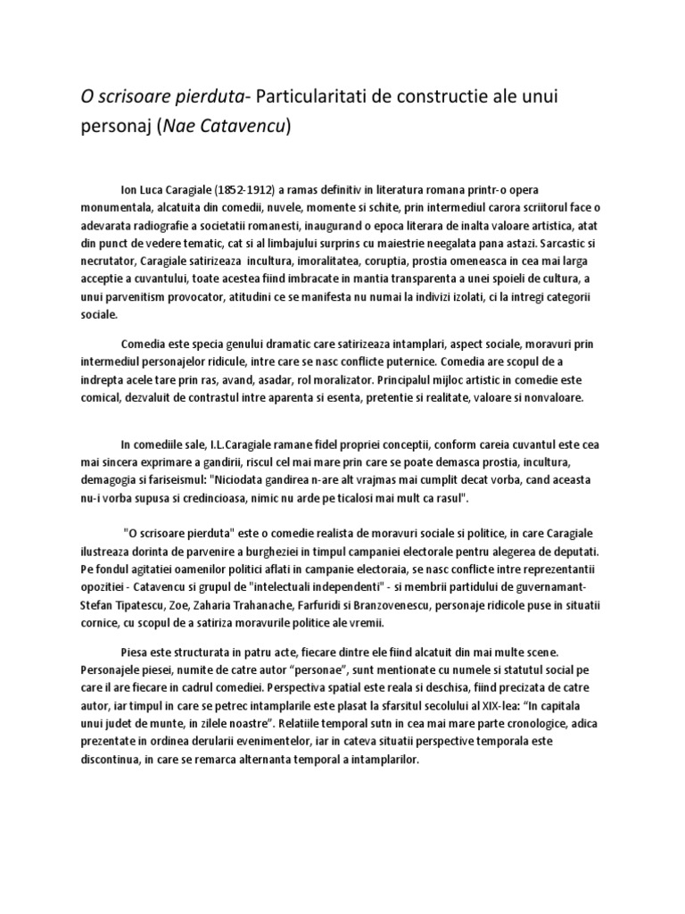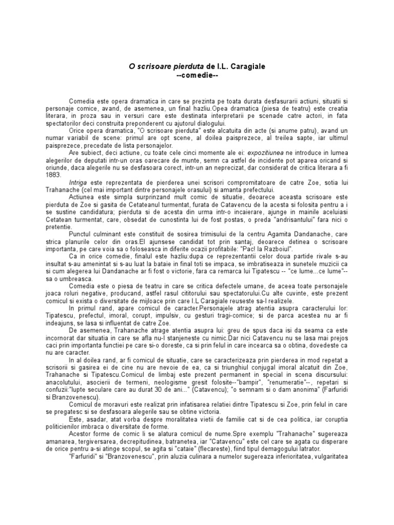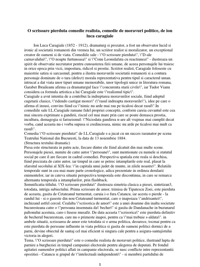 Doc O Scrisoare Pierduta Comedie Realista Comedie De Moravuri Politice De Ion Luca Caragiale Faby Adrian Academia Edu
