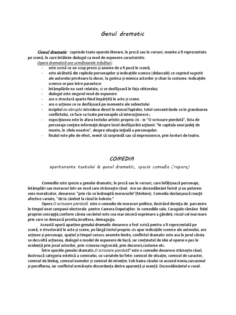 Doc Comedia O Scrisoare Pierduta Ion Luca Caragiale Particularitatile Textului Sabrina Sabrynutza Academia Edu