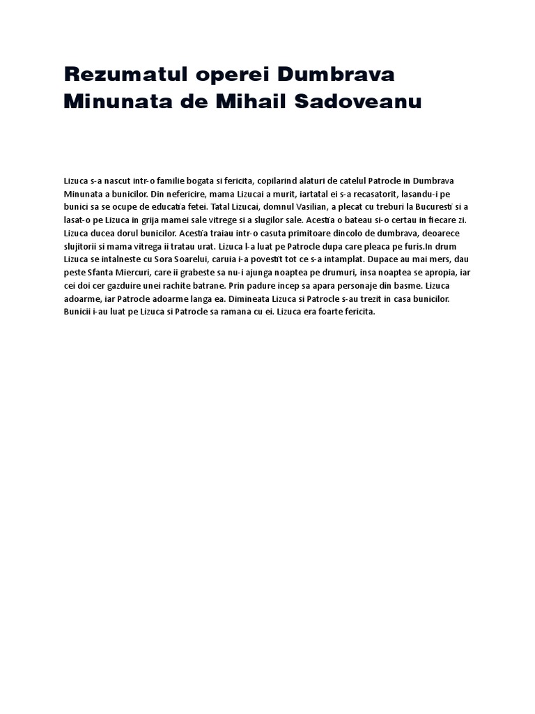 Rezumatul Operei Dumbrava Minunata De Mihail Sadoveanu Doc
