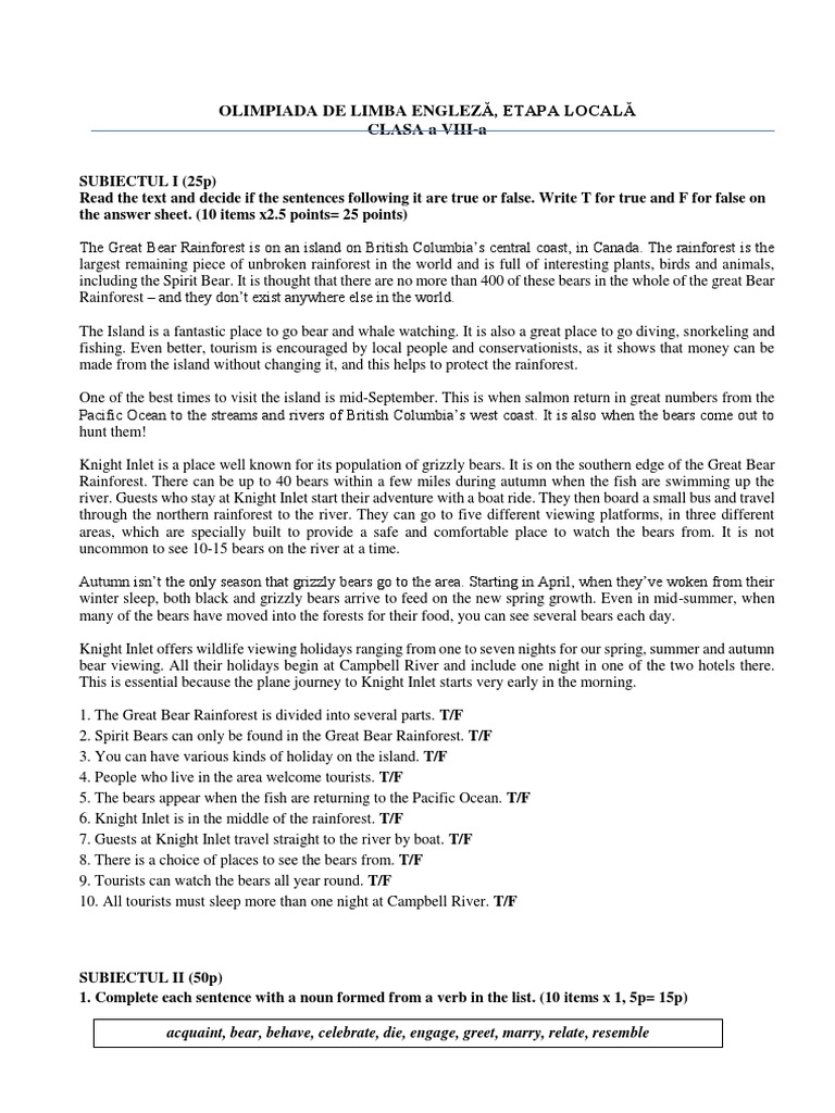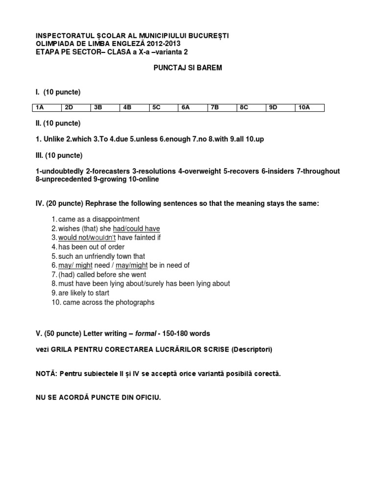 2013 Engleza Locala Bucuresti Clasa A Xa Subiecte Si Bareme Pdf Hunting Leisure