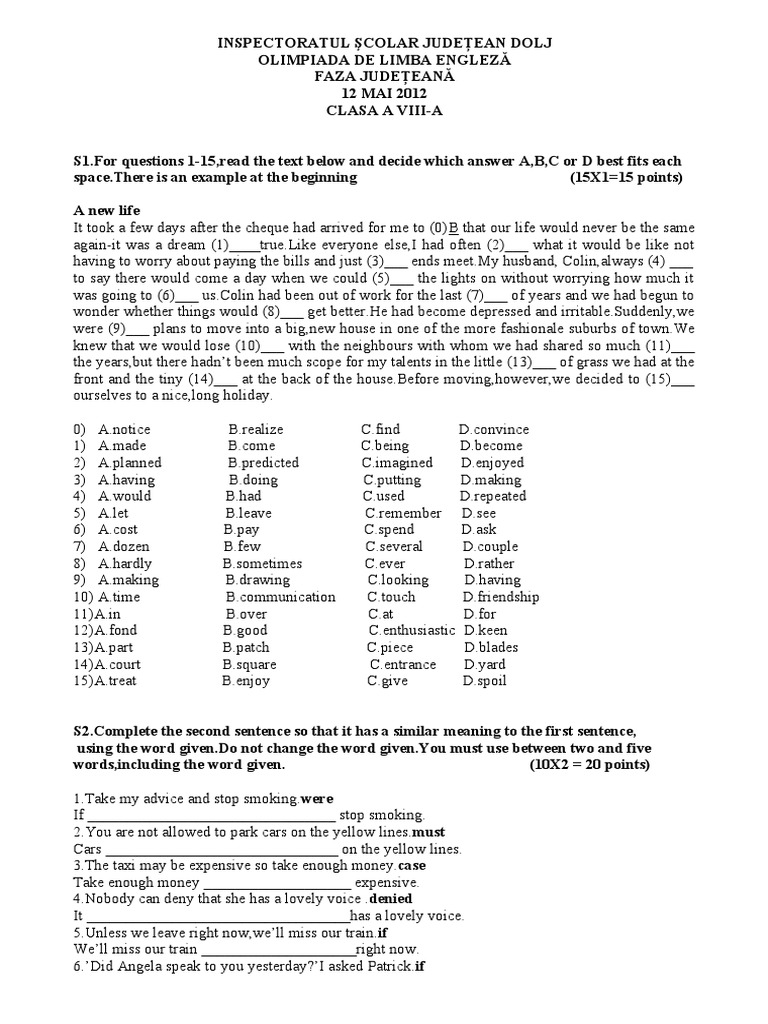Olimpiada Limba Engleza Clasa A Viii A Blog