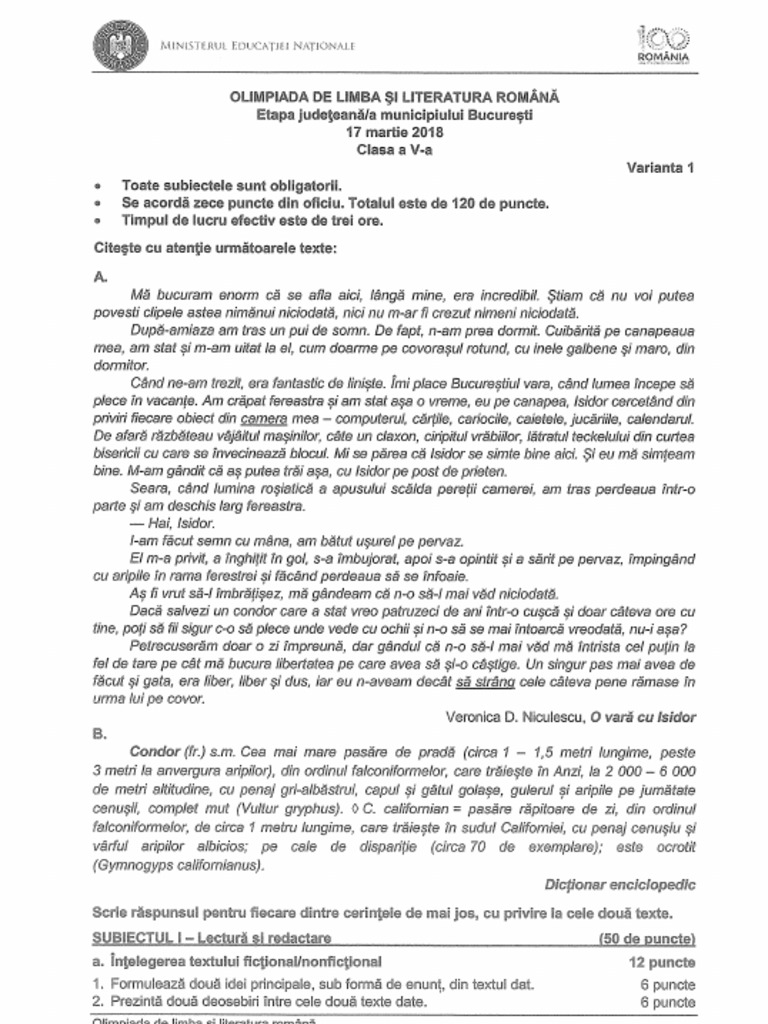 Subiecte Olimpiada Nationala De Limba Si Literatura Romana