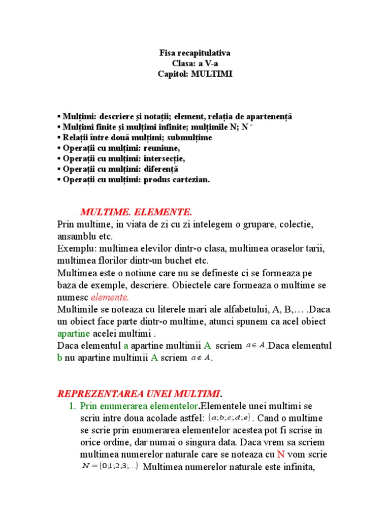Fisa Recapitulativa Multimi Clasa A V A Doc