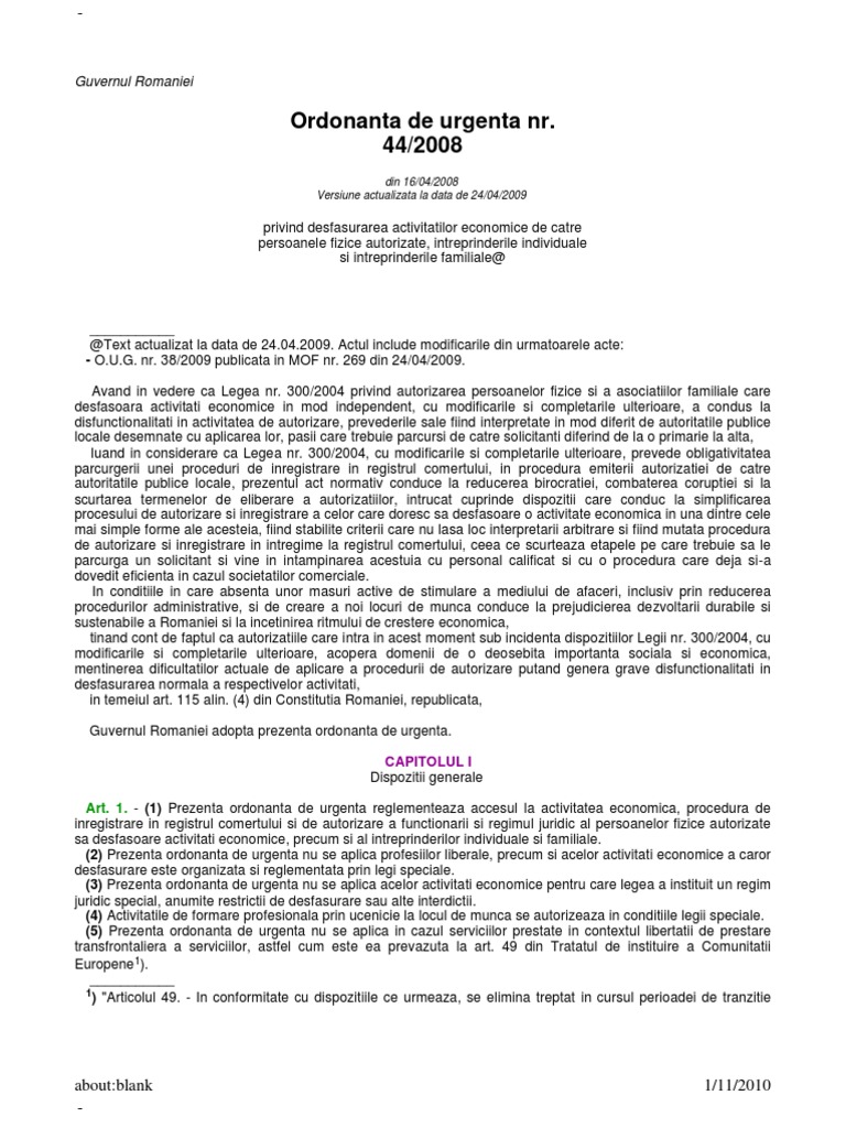 Oug 44 2008 Actualizată Legea Care Reglementează Pfa