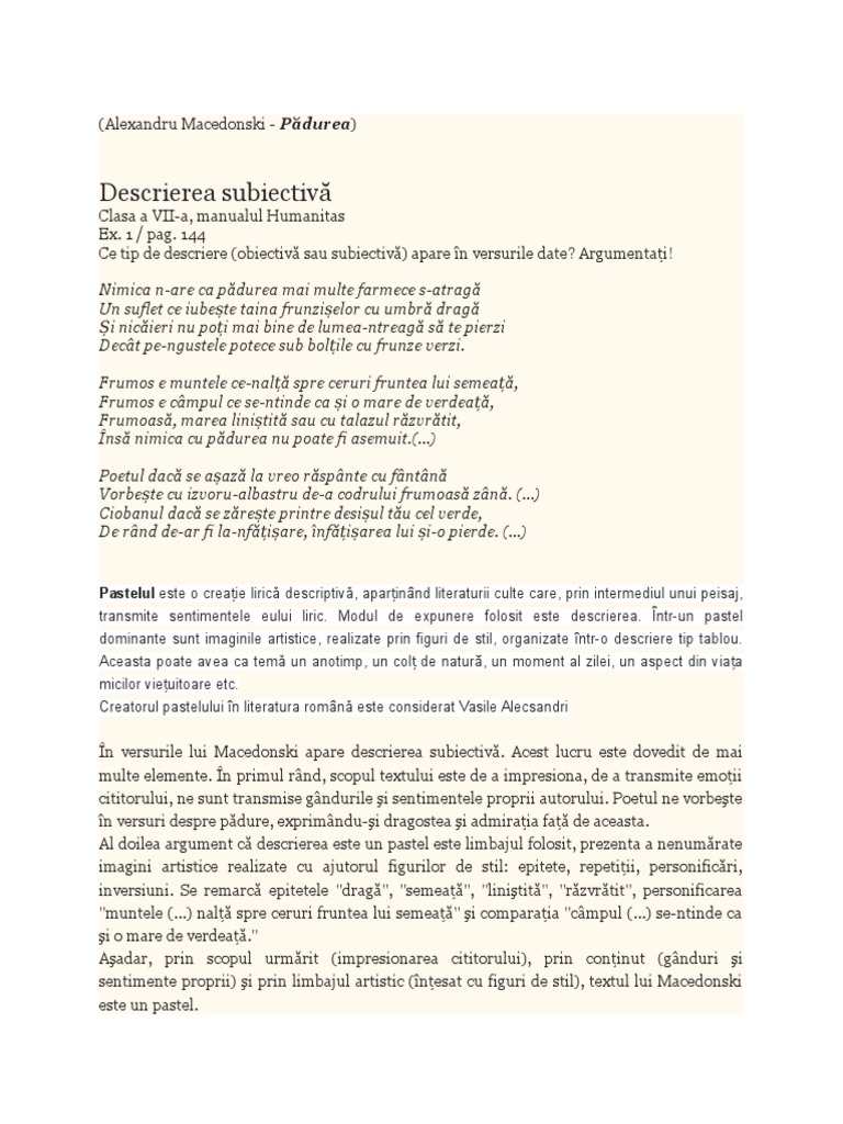 Arătați Ca Pădurea De Alexandru Macedouschi Este O Descriere Literara Va Rog Repede Brainly Ro
