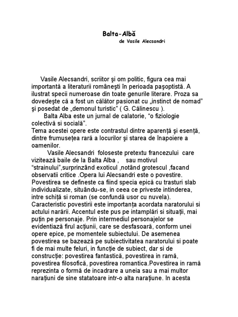 Balta Alba Povestire Argumentare