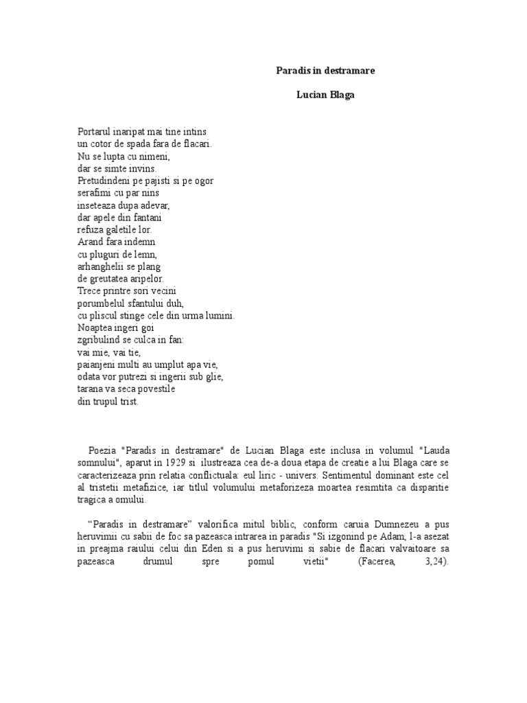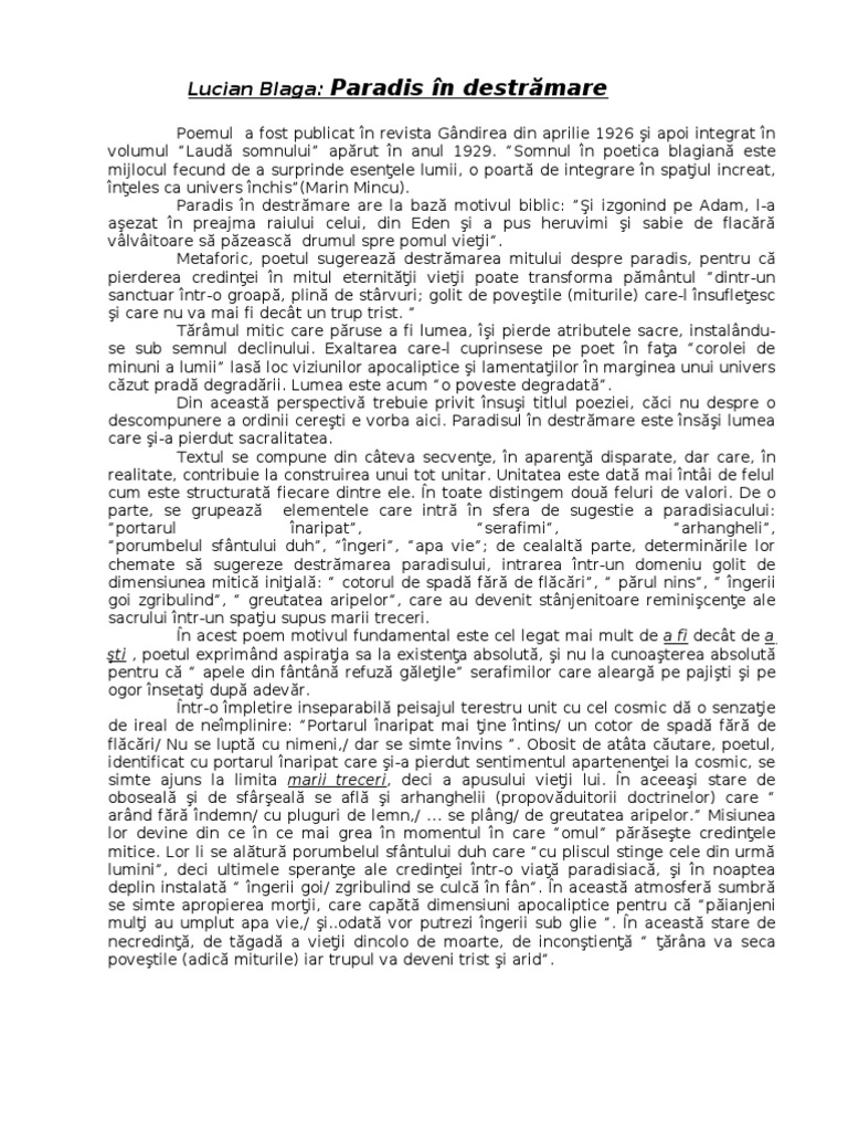 Referat Lucian Blaga Paradis In Destramare 329236 Graduo