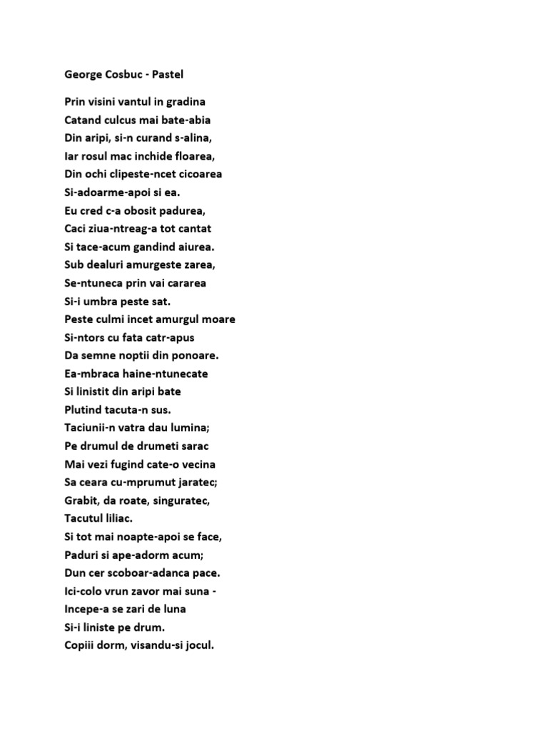 Comentati In Scris Strofa 1 Si 2 Din Pastel De George Cosbuc Brainly Ro