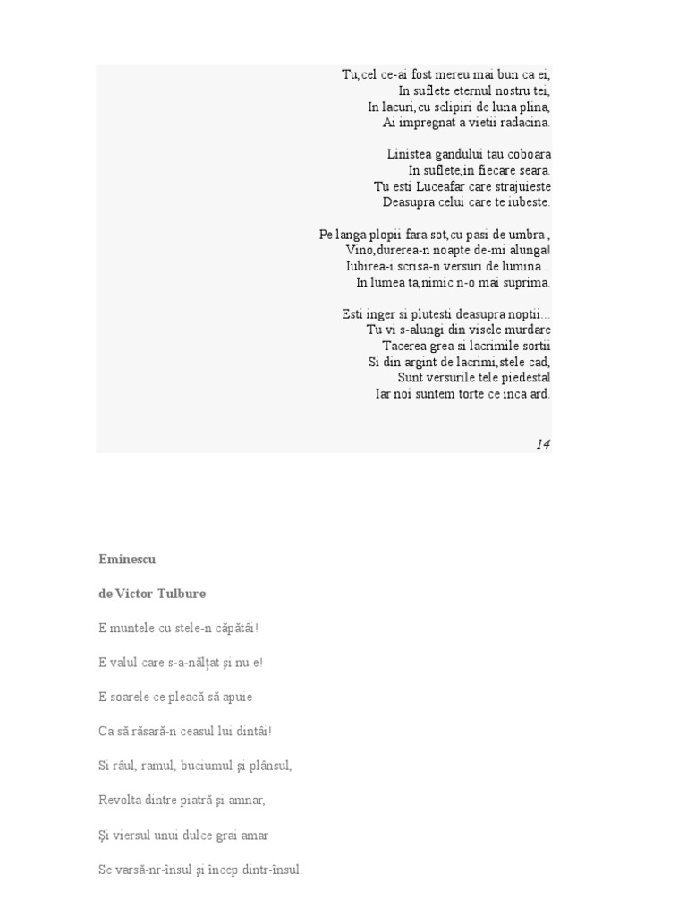 Poezii Dedicate Lui Eminescu