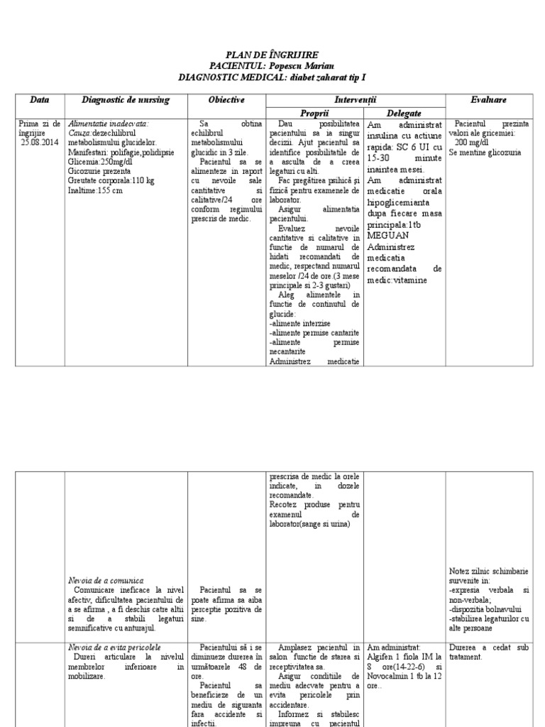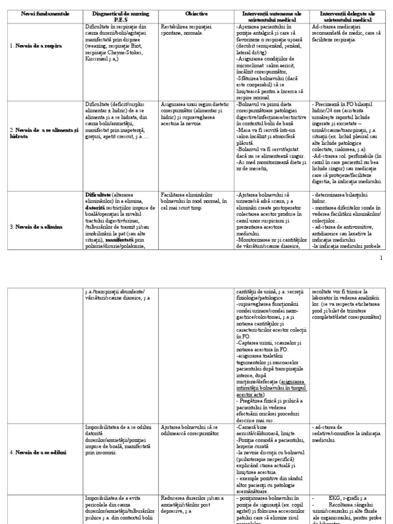 Plan De Ingrijire Tabele
