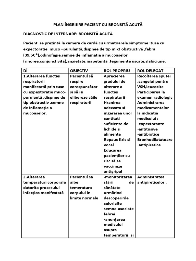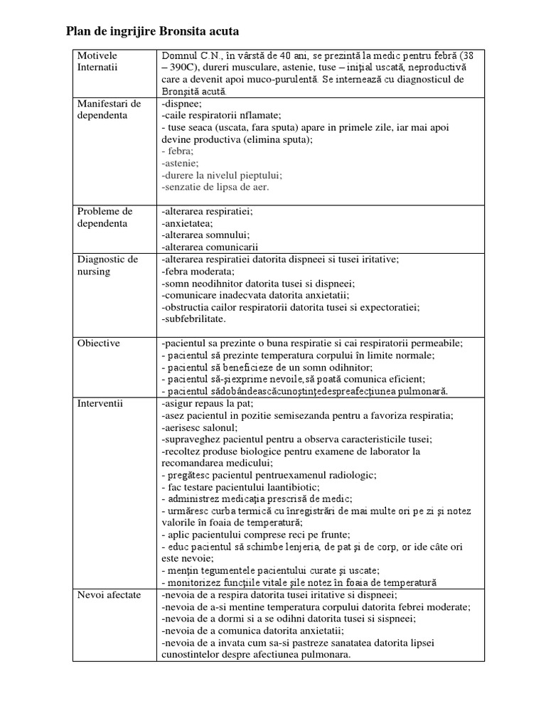 197236167 Plan De Ingrijire Bronsita Acuta Pdf