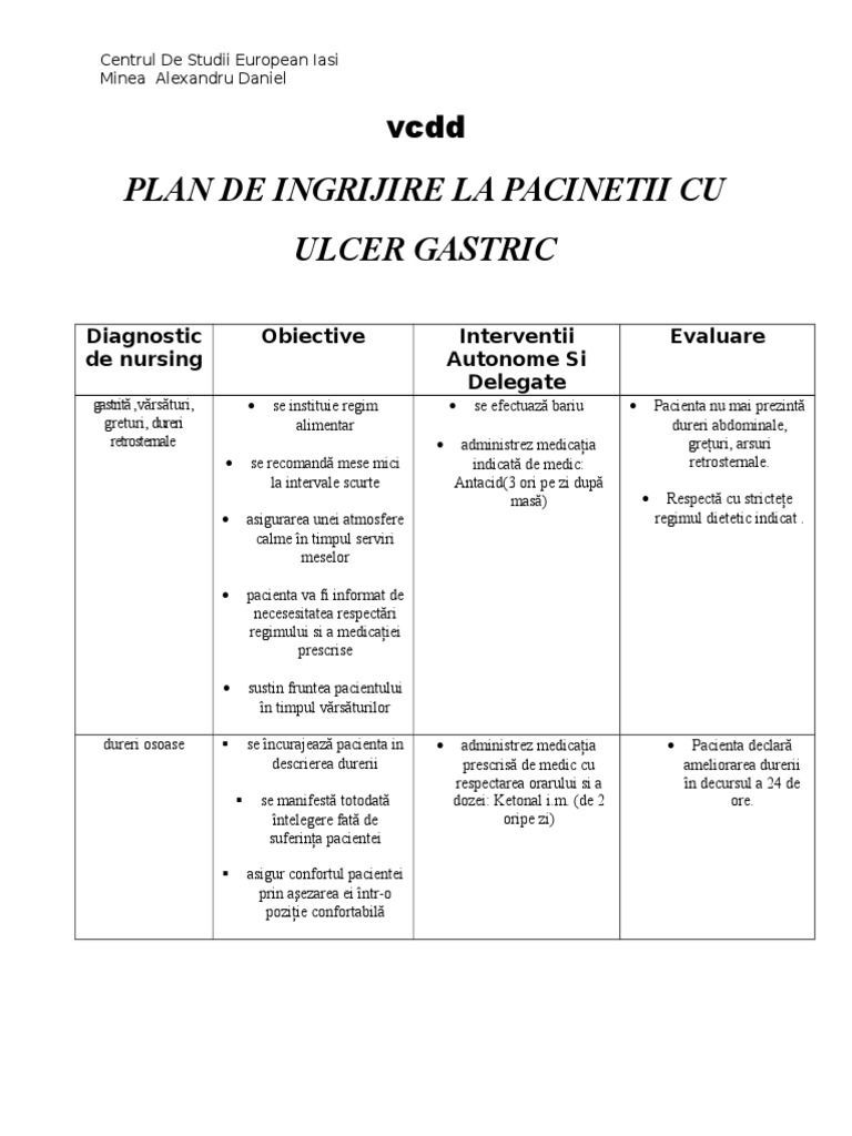 Plan De Ingrijire Ulcer Gastric