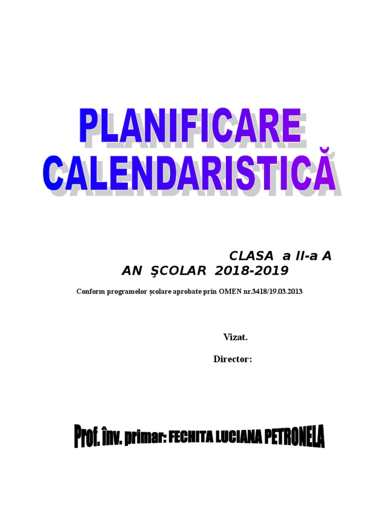 Planificare Calendaristica Anuala 2019 2018 Buna