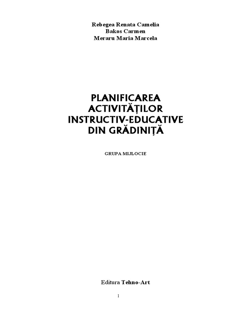 Suport Metodic Pentru Planificarea Calendaristică Grupa Mică Mijlocie Si Mare Editura Tehno Art
