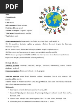 Planificare Educație Socială Gandire Critică și Drepturile Copilului Cls A V A Cultură Civică Cls A Vi A