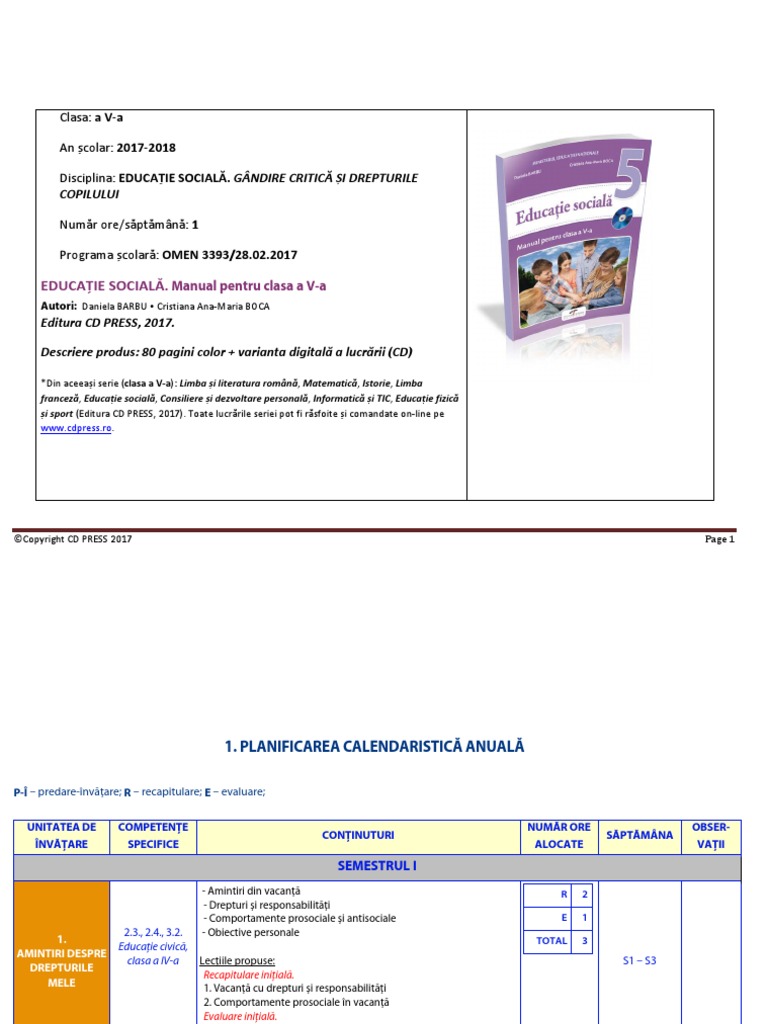 Planificare Socială Pentru Clasa A V A Planificari Clasa V A Planificări