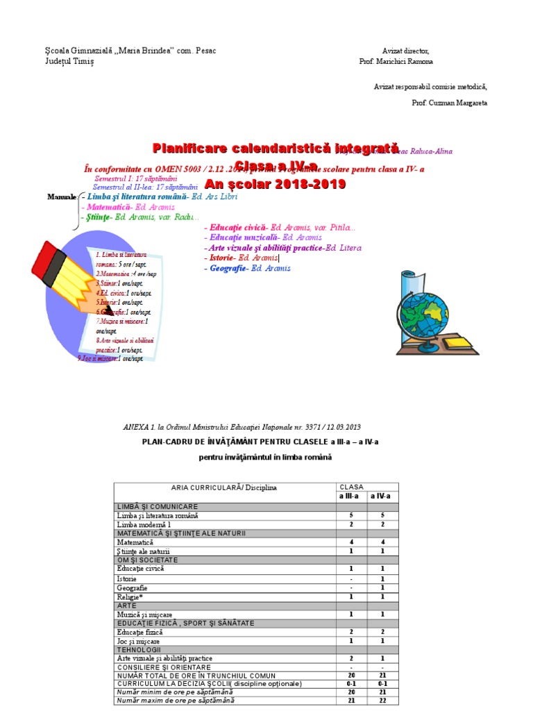 Planificare Calendaristică Clasa A Iv A 2018 2019 Docx