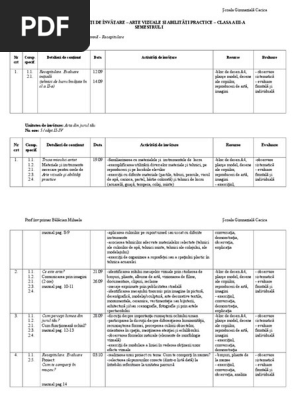 Proiectarea Pe Unitati De Invatare Arte Vizuale Si Abilitati Practice Clasa A Iiia A