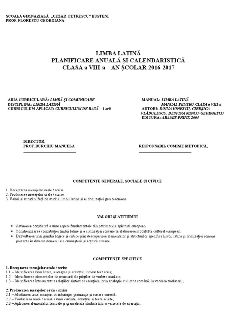 Doc Planificare Latina Marius Ciprian Bogdan Academia Edu