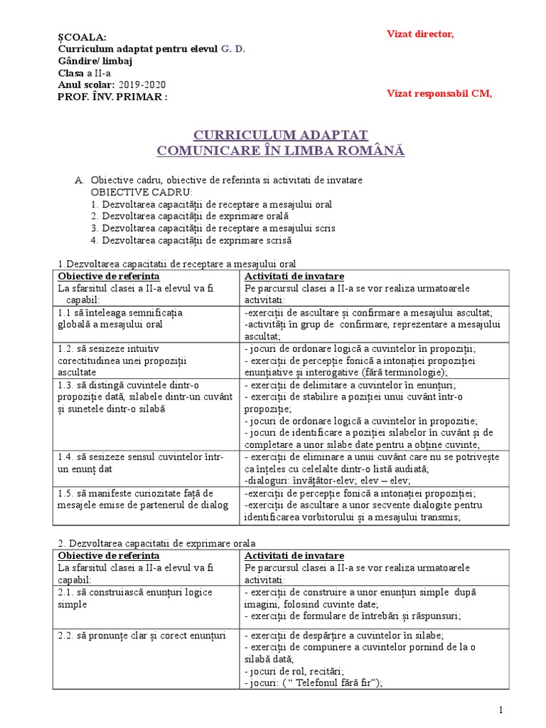 Clasa A Doua Curriculum Adaptat Si Planificare Clr Mem