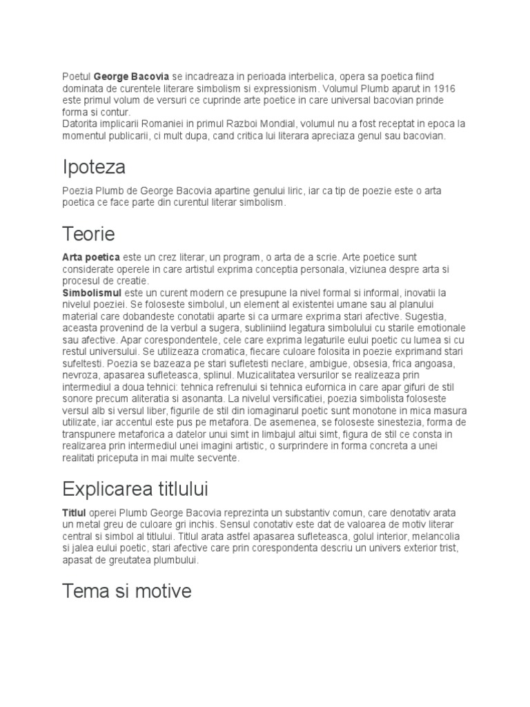 Doc Eseu Plumb Bacovia Magda Cazacu Academia Edu