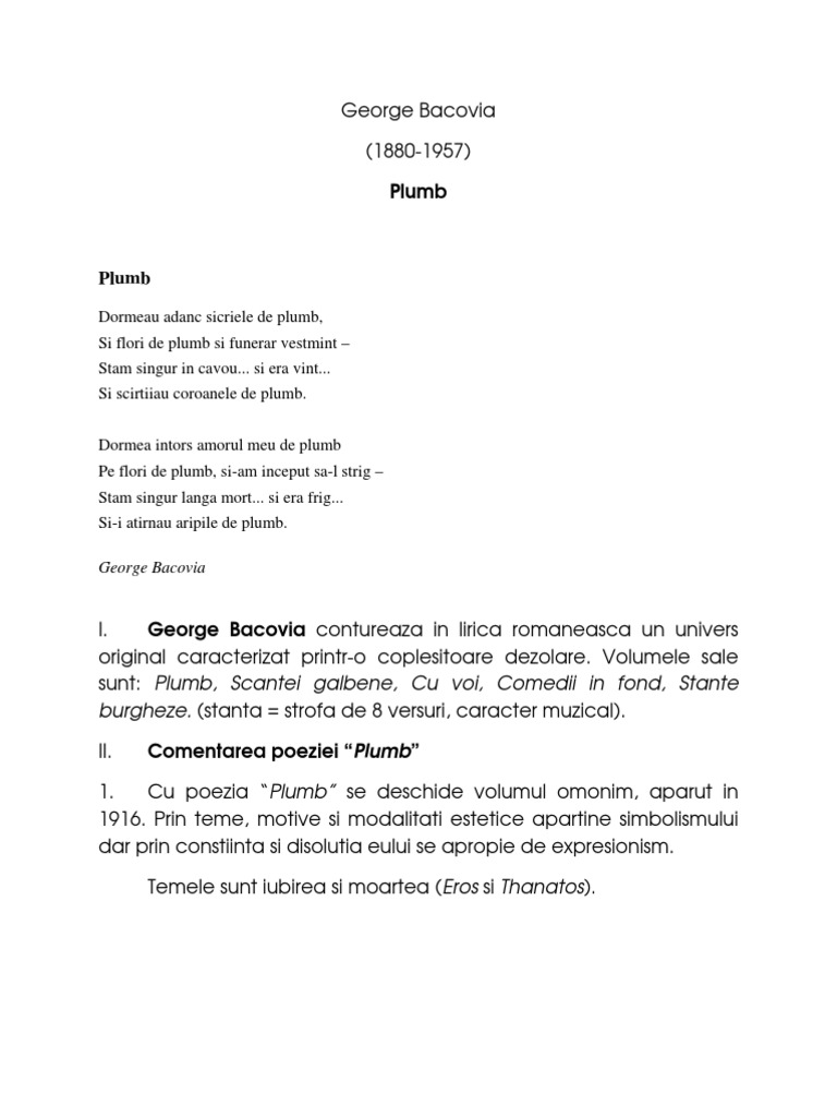 Plumb George Bacovia Eu Nu Strivesc Corola De Minuni A Lumii Lucian Blaga