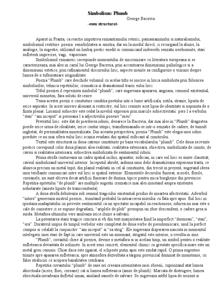Eseuri Bac Lb Romană Plumb De George Bacovia Wattpad