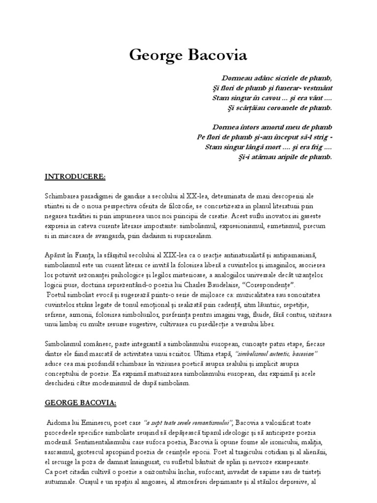 Doc Arta Poetica Simbolista Moderna Plumb George Bacovia Eseu Florin Chiritoiu Academia Edu