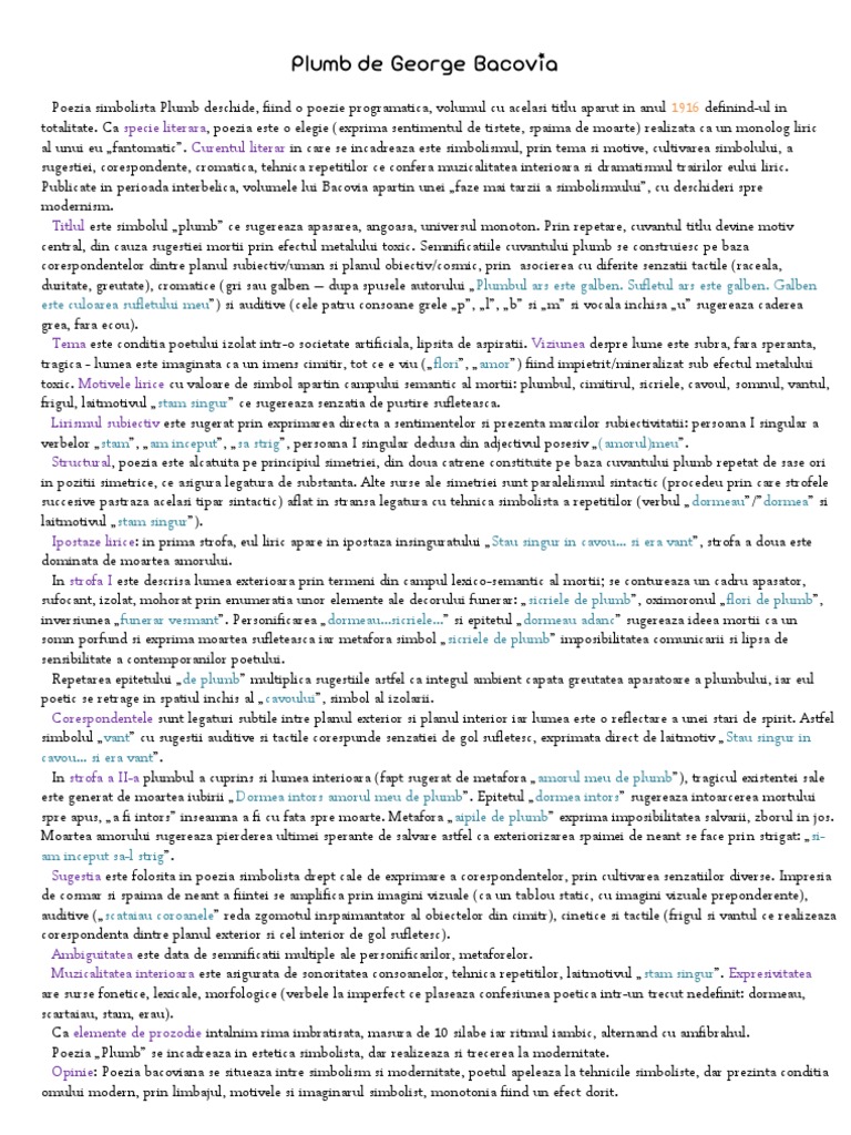 Plumb De George Bacovia Liceunet Ro