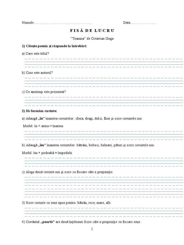 Fisa De Lucru Toamna O Goga