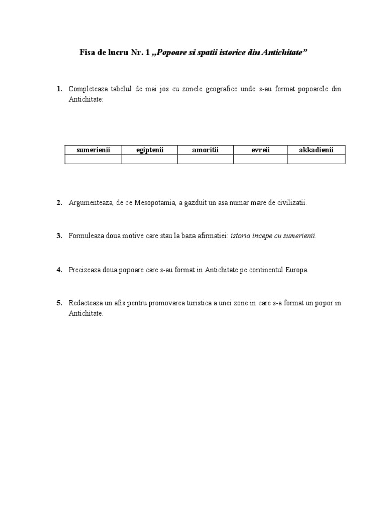 Fisa De Lucru Popoare Si Spatii In Antichitate Cls 9 Doc