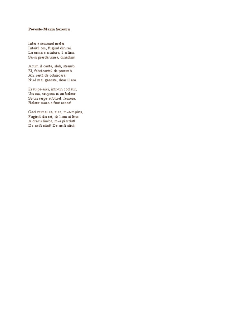 Poveste De Marin Sorescu Interpretarea Versurilor