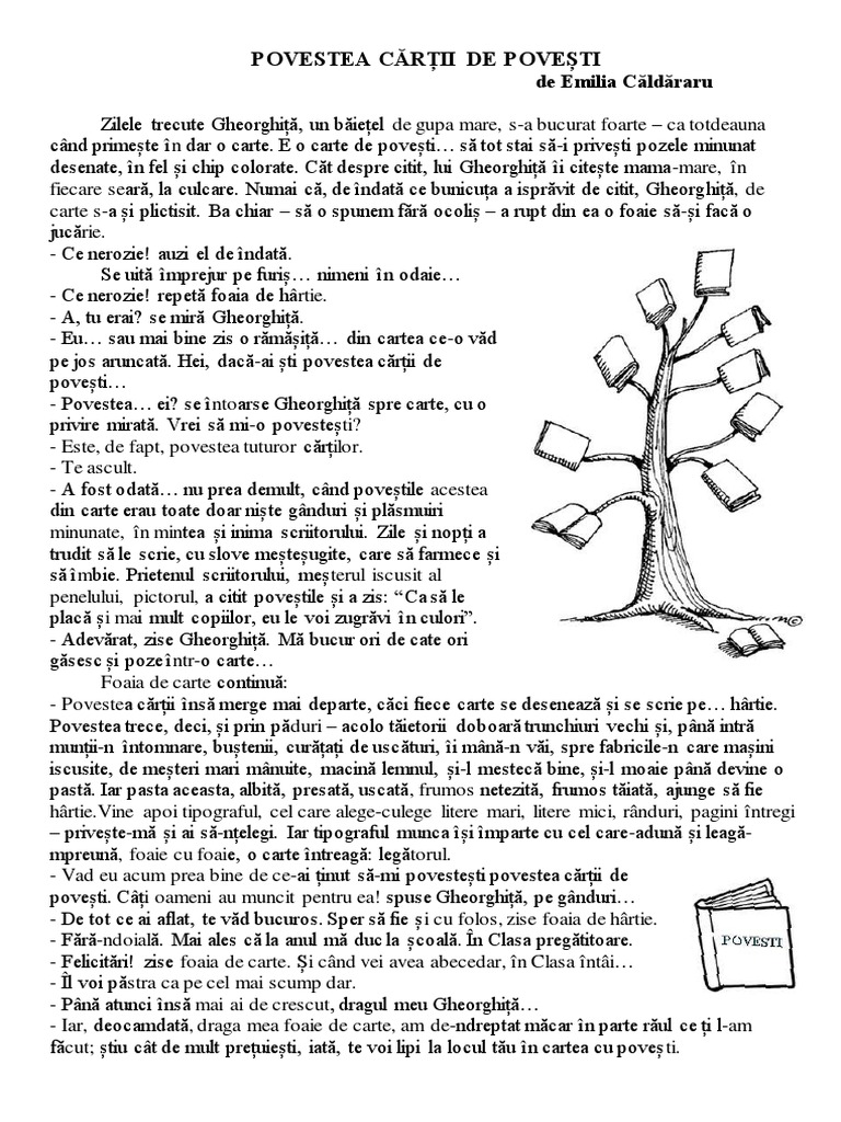 Povestea Pe Scurt Povestea Cartii De Povesti De Emilia Căldăraru Brainly Ro