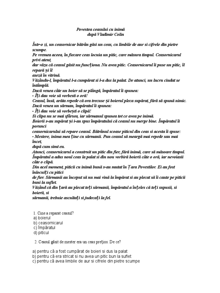 Povestea Ceasului Cu Inima Pdf Document