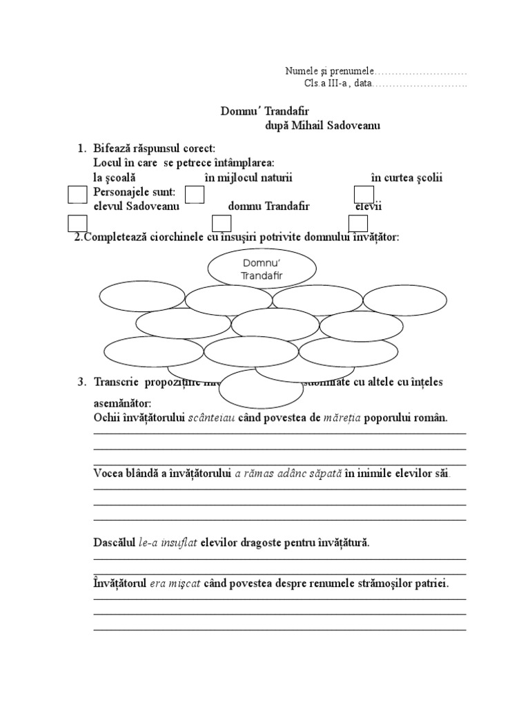 Doc Domnu Trandafir De Mihail Sadoveanu Model De Caracterizare Anita Andreca Academia Edu