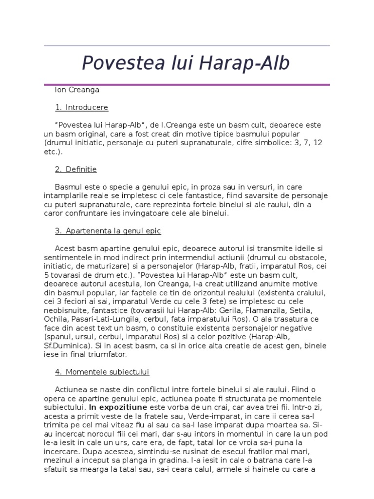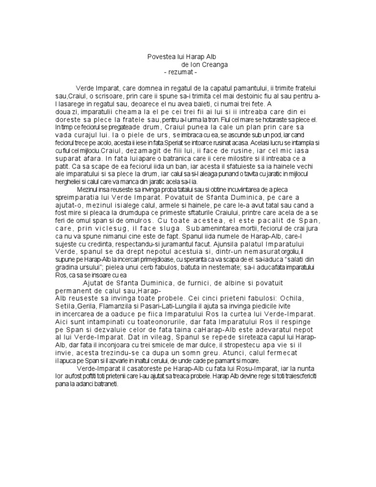 Povestea Lui Harap Alb De Ion Creangă Rezumat Mihai Dorian Academia Edu