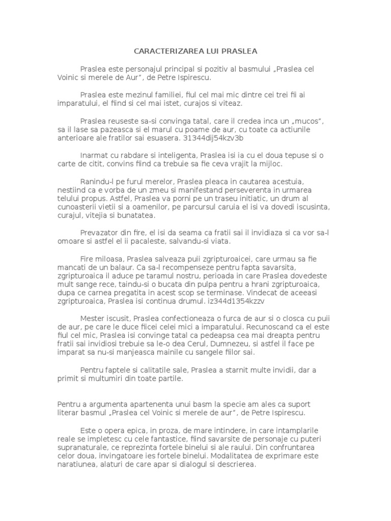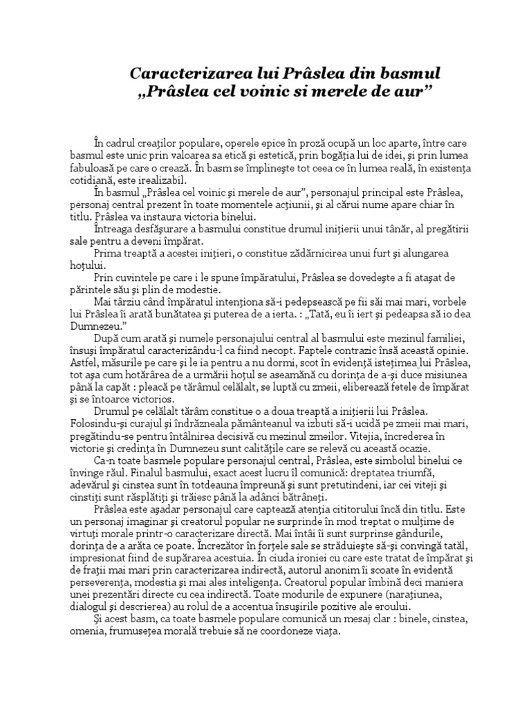 Caracterizarea Lui Praslea Din Basmul Praslea Cel Voinic Si Merele De Aur