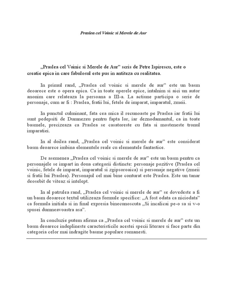 Referat Praslea Cel Voinic Si Merele De Aur 334503 Graduo