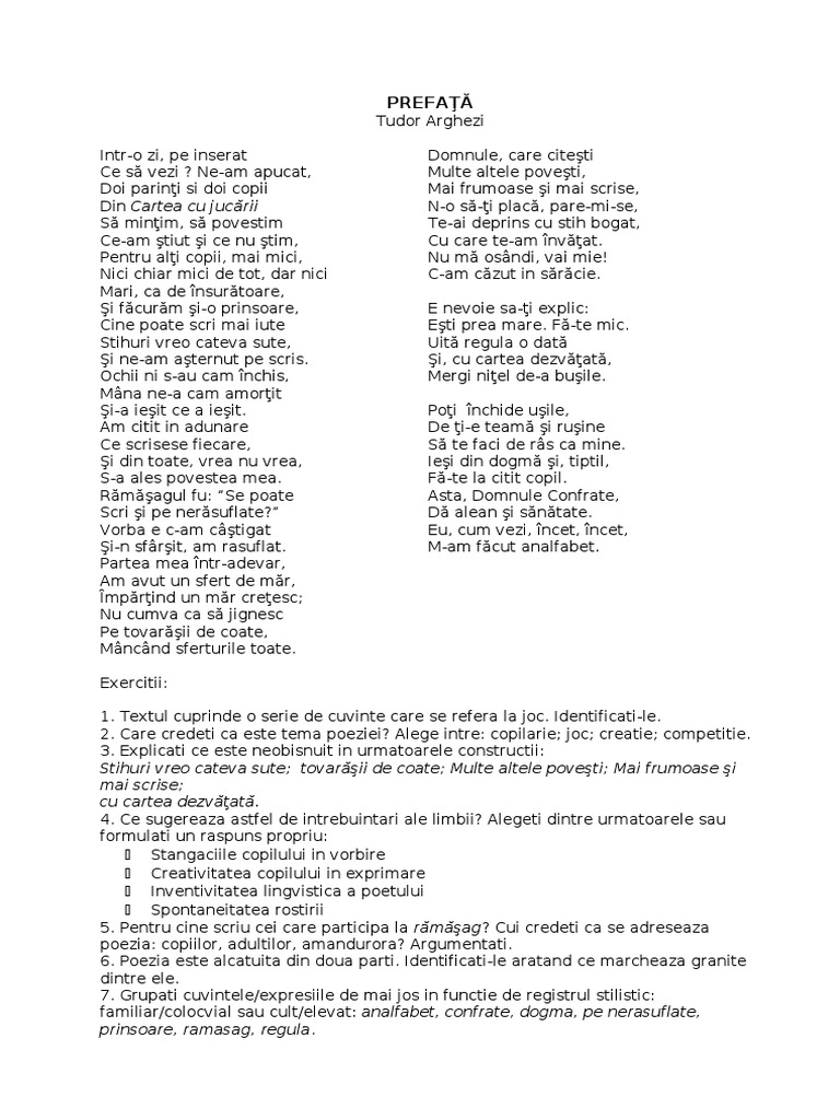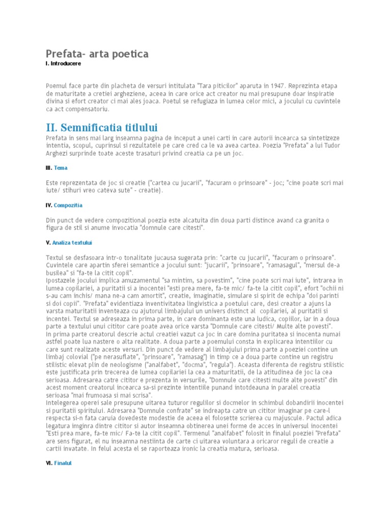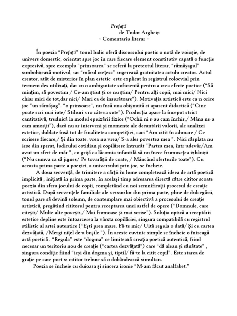 Argument Are Text Prefata De Tudor Arghezi