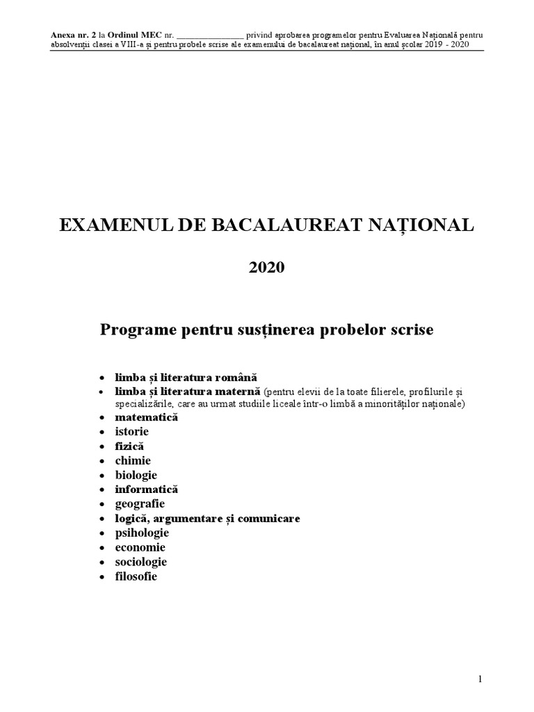 Programa Modificata Bacalaureat 2020 Toate Disciplinele