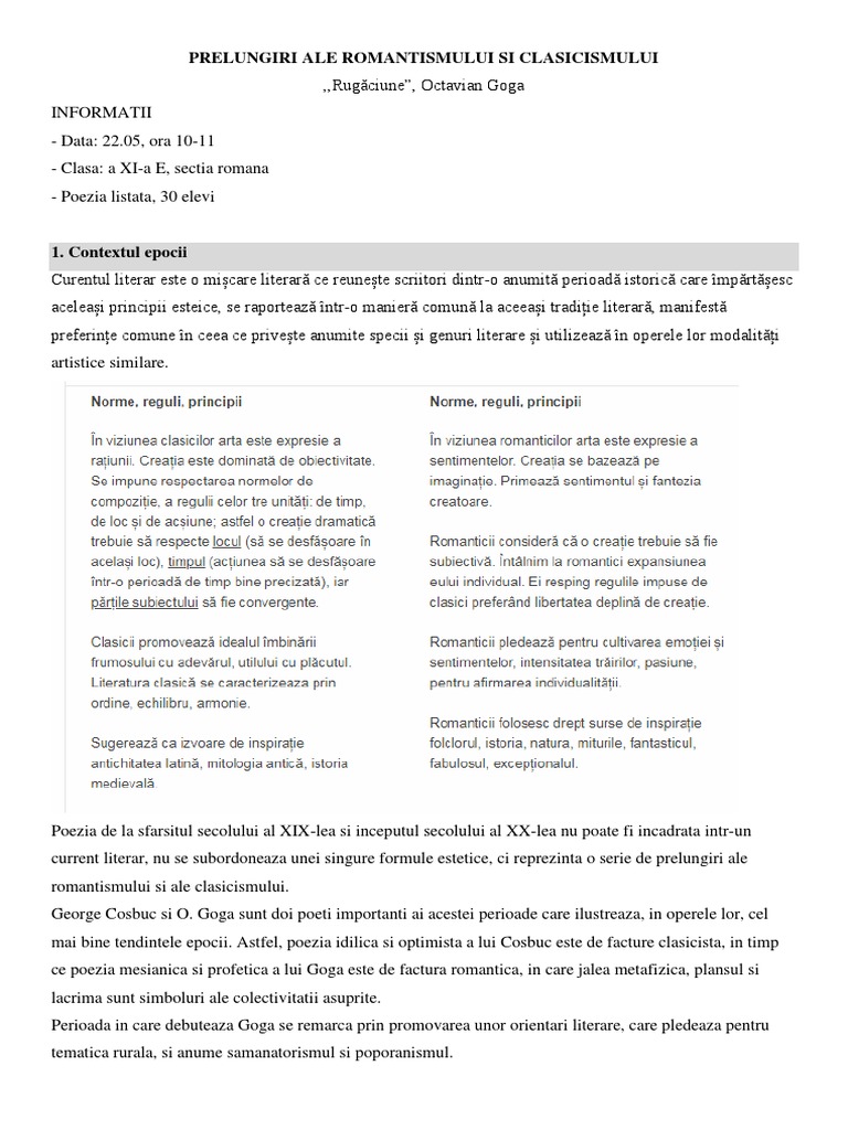 Prelungiri Ale Romantismului Si Ale Clasicismului Nu Te Ai Priceput G Cosbuc