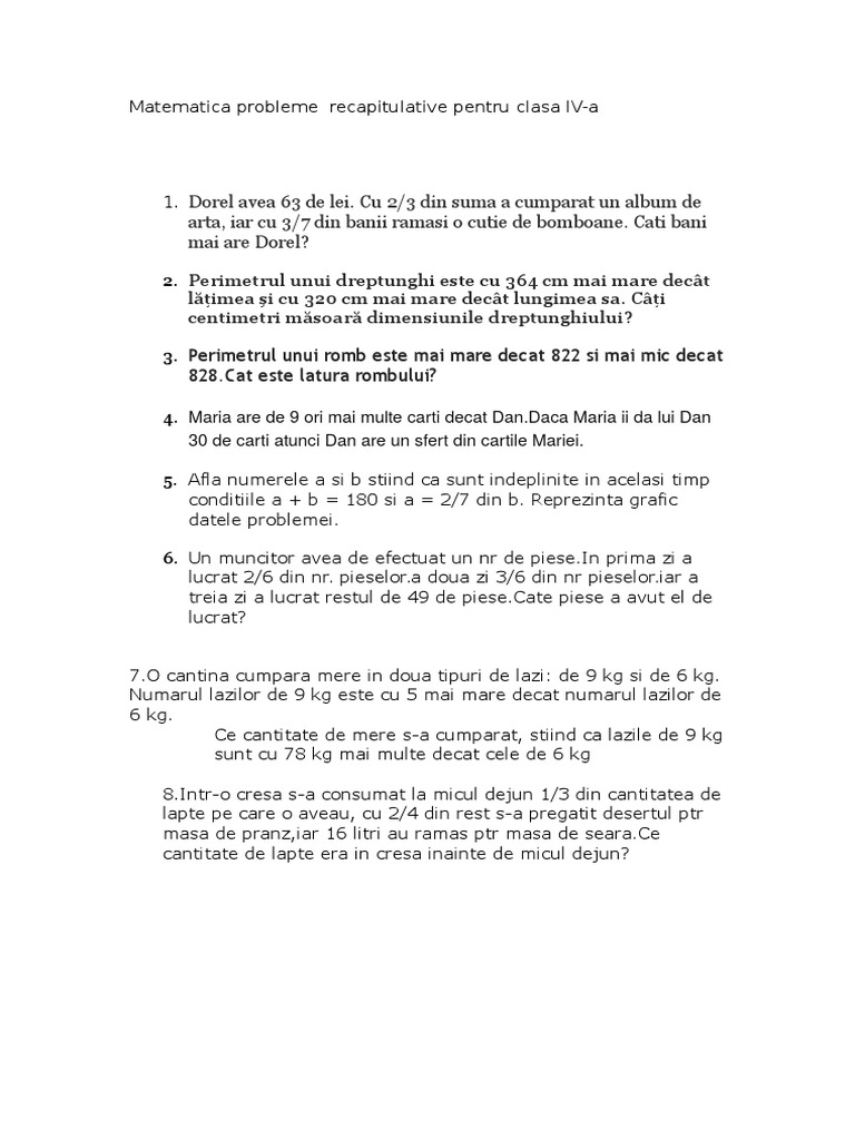 Probleme Rezolvate Clasa A Iv A Lamate