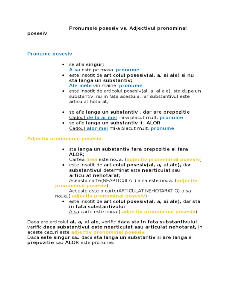Pronumele Posesiv Si Adjectivul Pronominal Demonstrativ