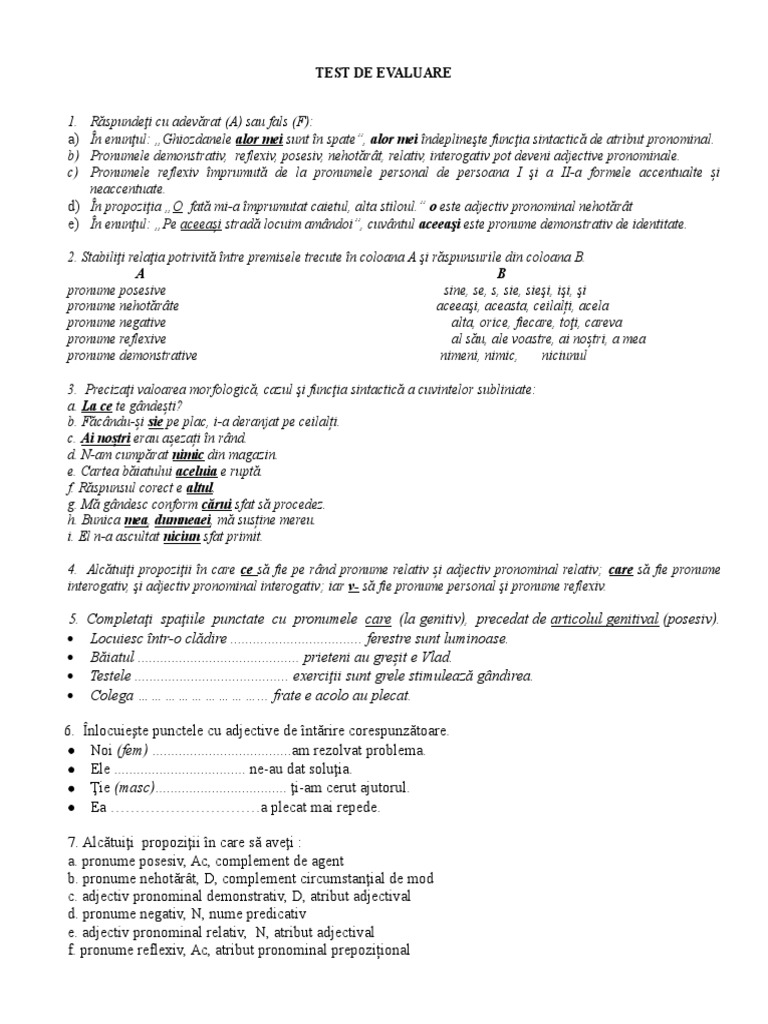 Pronumele Fisa De Evaluare